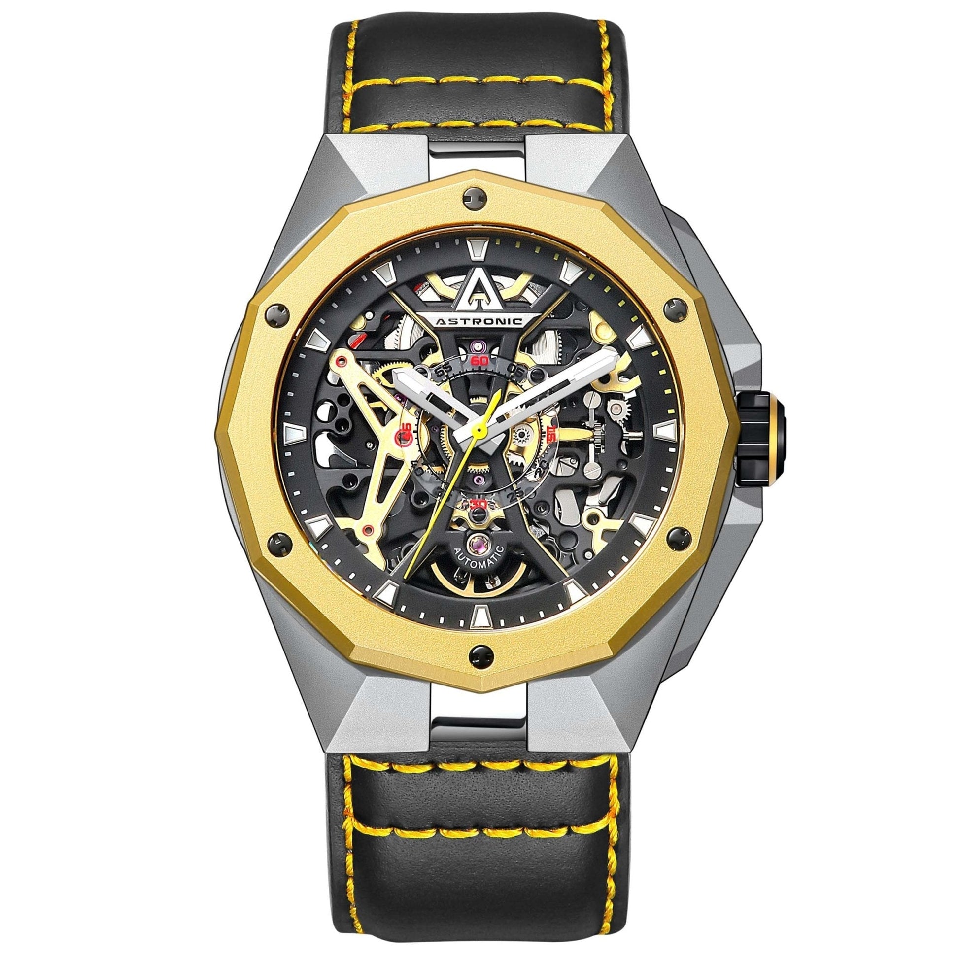 Astronic Apache collection, whose dials draw their inspiration from the exteriors of Apache 64 helicopter. Apache-64 has a powerful T700 turboshaft engine; the Astonic Apache also has a powerful engine that is the Skeleton Automatic movement, which is made visible through a large opening on the dials. Its baseplated is CNC-machined and beautifully finished. The Movement features an extra large mainspring, holding an exceptional 80 Hours of Power Reserve, nearly double that of most automatic movement. The Astronic Apache's hollow, curved skeleton dial is designed to highlight all the valuable movement parts of the movement. It's Tritec Swiss Luminous hands offer the best night vision, and its Flexi-glass Second palte simulates the design of the helicopter's side rotors.