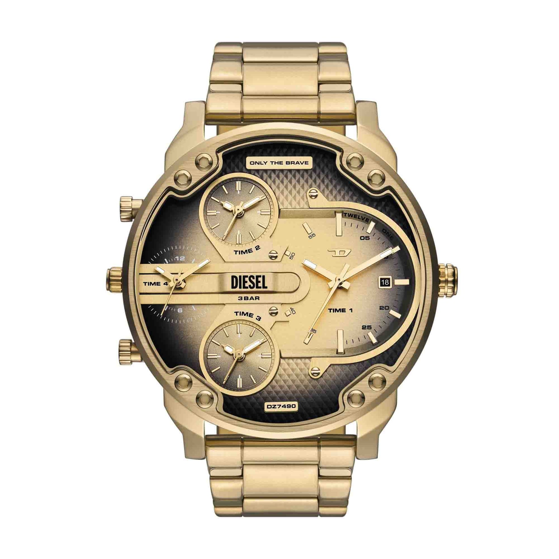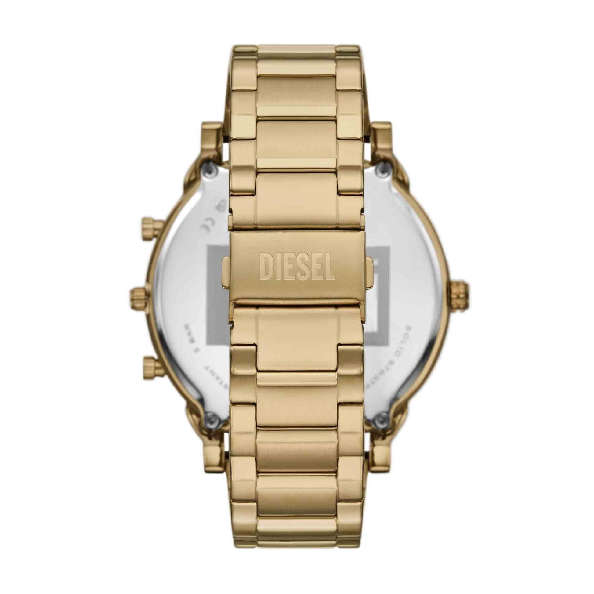 Diesel's 54mm Mr. Daddy Slim watch features a black and gold dial, multi-movement and a gold-tone stainless steel bracelet.