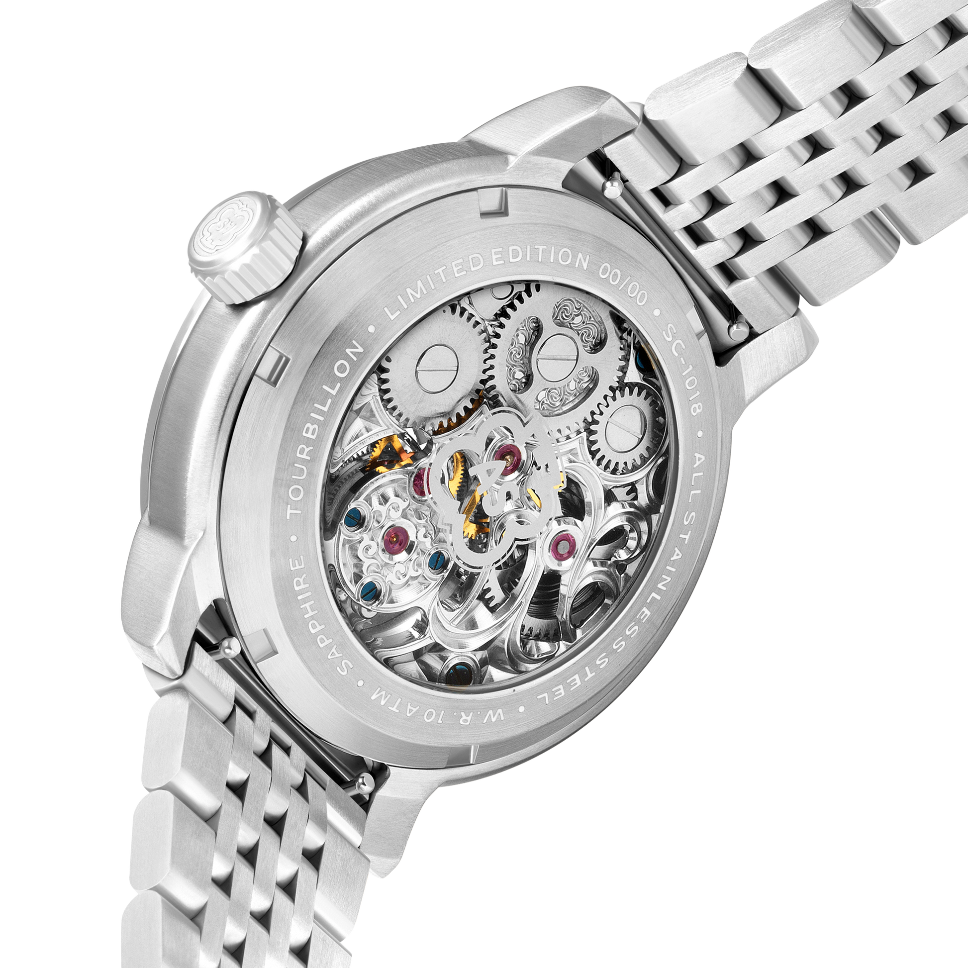 Seamlessly uniting the complexity of a tourbillon with the dual functionality of a GMT and moonphase, this extraordinary tourbillon redefines the boundaries of precision and craftsmanship. While the dial is a canvas of haute horlogerie, the transparent caseback offers an intimate view of the intricate movement—an enduring testament to Schild’s dedication to excellence.