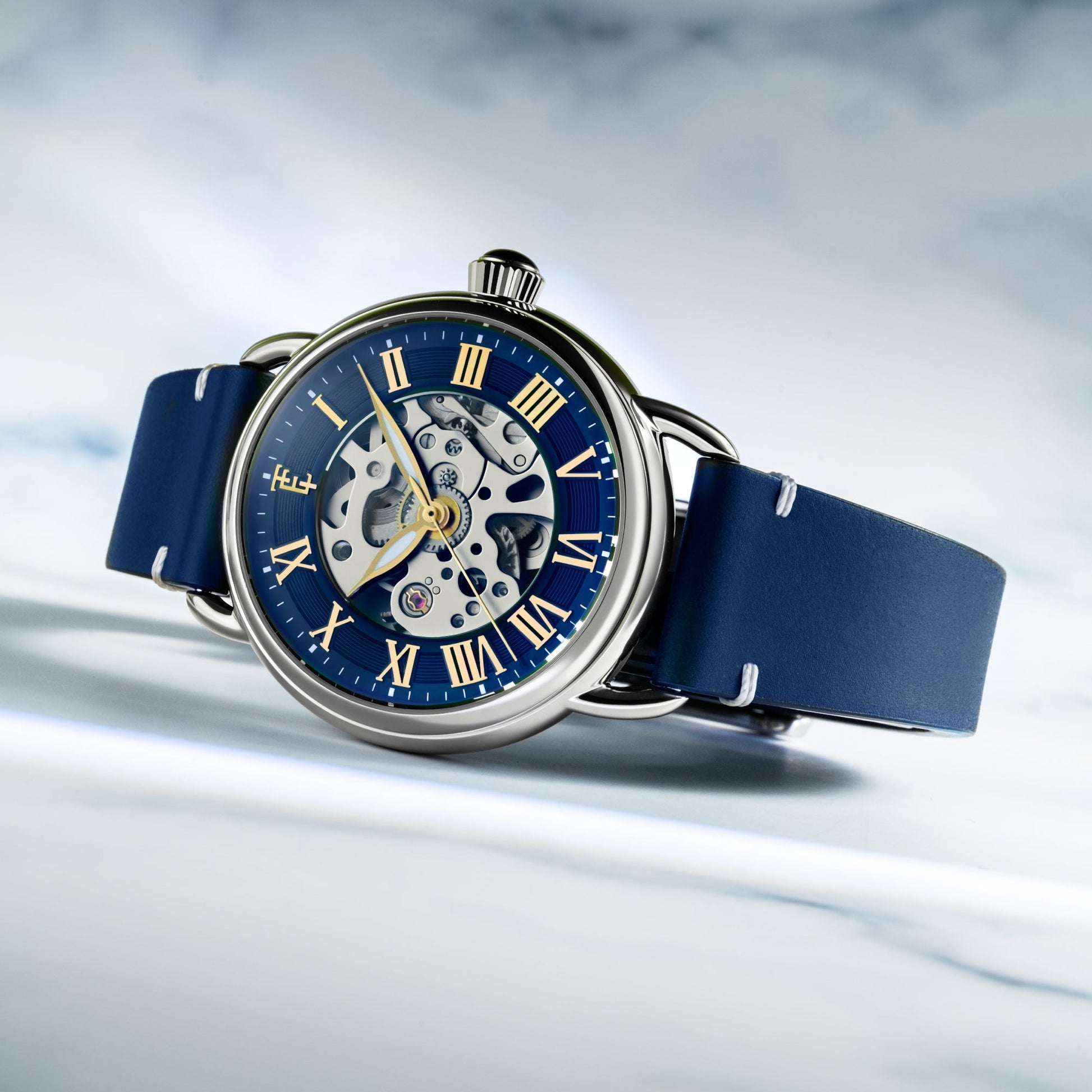 Masterfully crafted for those who appreciate the art of time, the Investigator 40 is a perfectly-sized timepiece with a skeleton dial, which exposes the mesmerizing complexity of its automatic movement, complemented by an elegant chapter ring and Roman numerals for a modern vintage flair. Turn it over to admire the exhibition case back window into the mechanics that power your every moment.