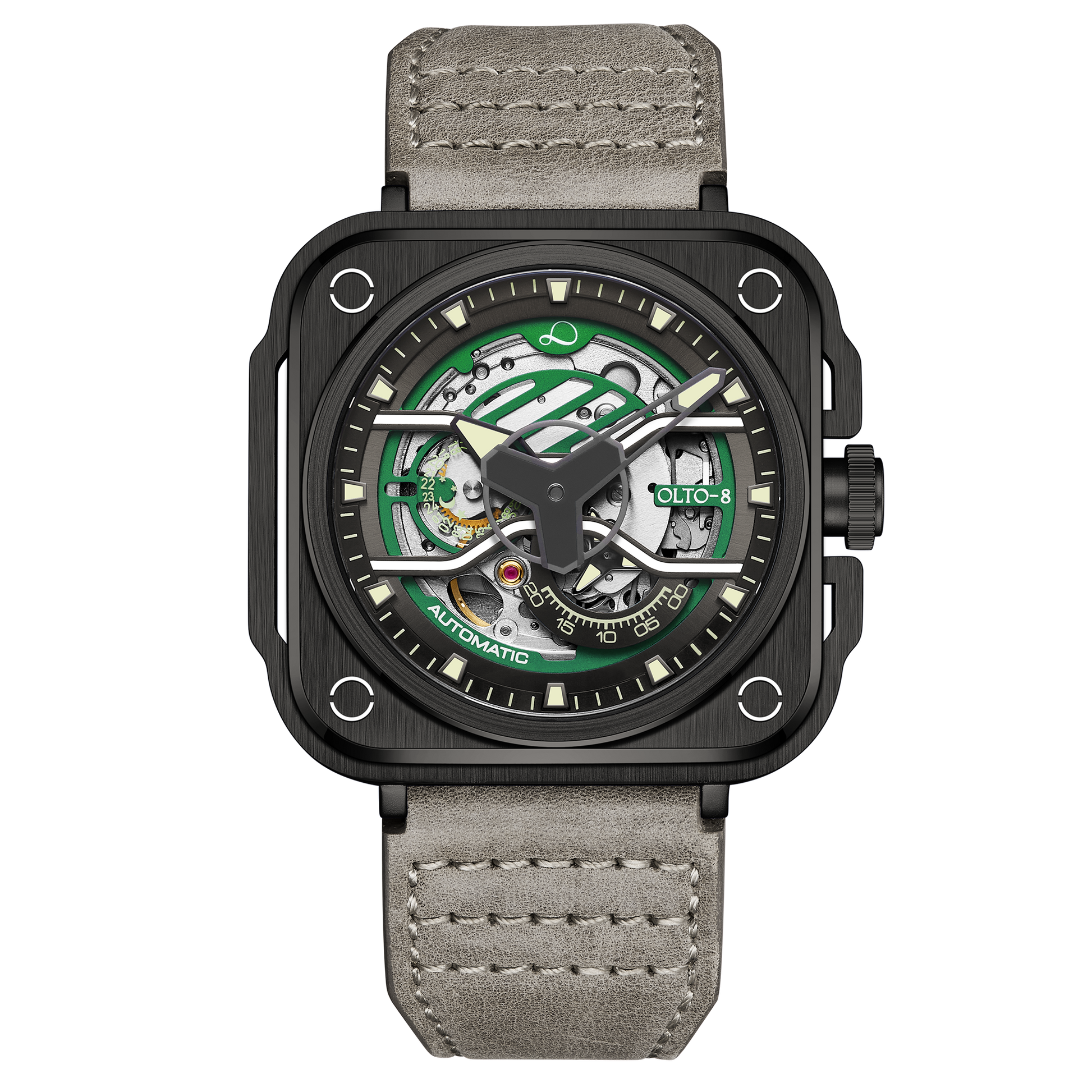 OLTO-8 IRON-EX Square Skeleton Automatic Watch Green