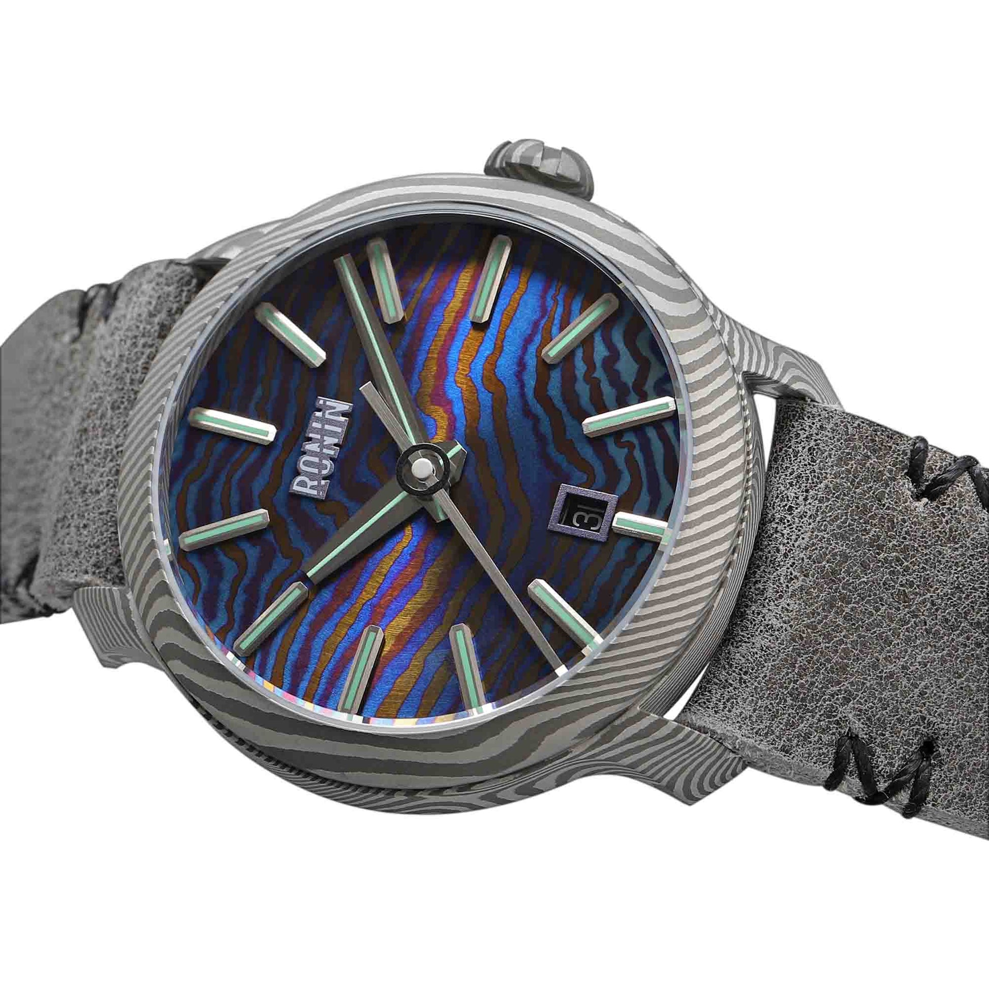 Ronin (浪人) originates from Japan, reflecting a rich heritage. In the feudal era, samurai stood as a revered class, dedicated to their daimyo, thriving on the lands and salaries bestowed upon them. Yet, amid wars and political upheaval, some samurai lost their masters and transformed into ronin, embodying resilience and honor. This watch draws inspiration from the elegant craftsmanship of samurai swords, crafted from Damascus steel, its very essence woven into the design. The watch radiates the spirit of traditional Japanese Bushido, a testament to strength and unwavering commitment.