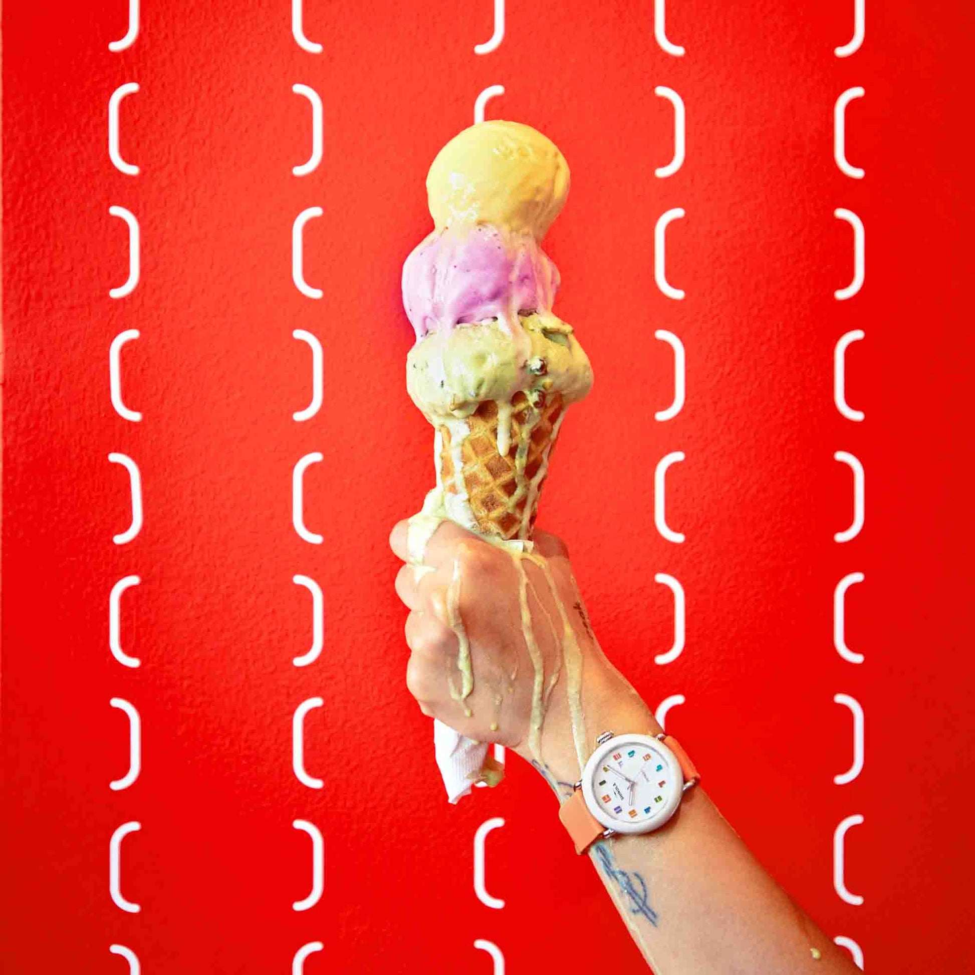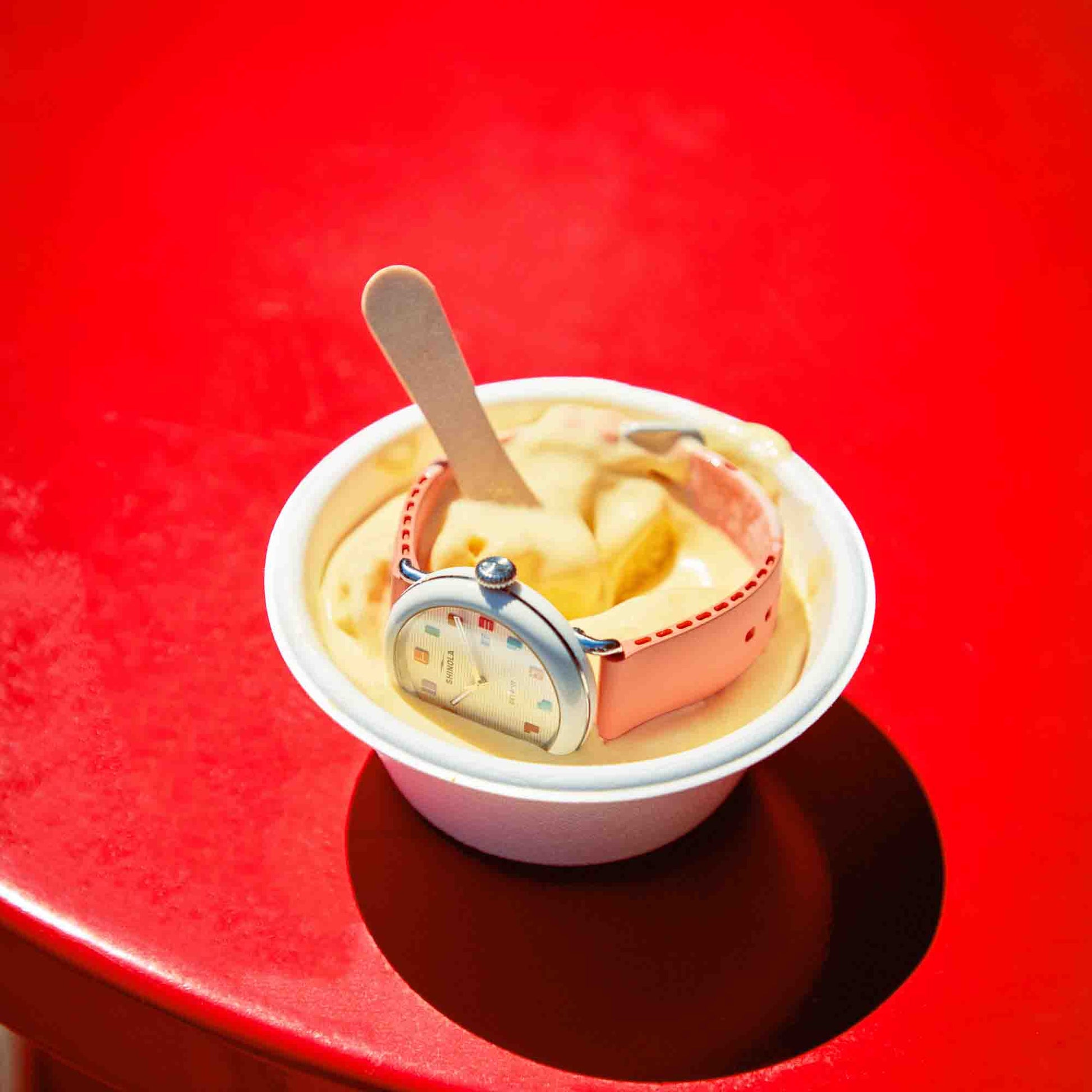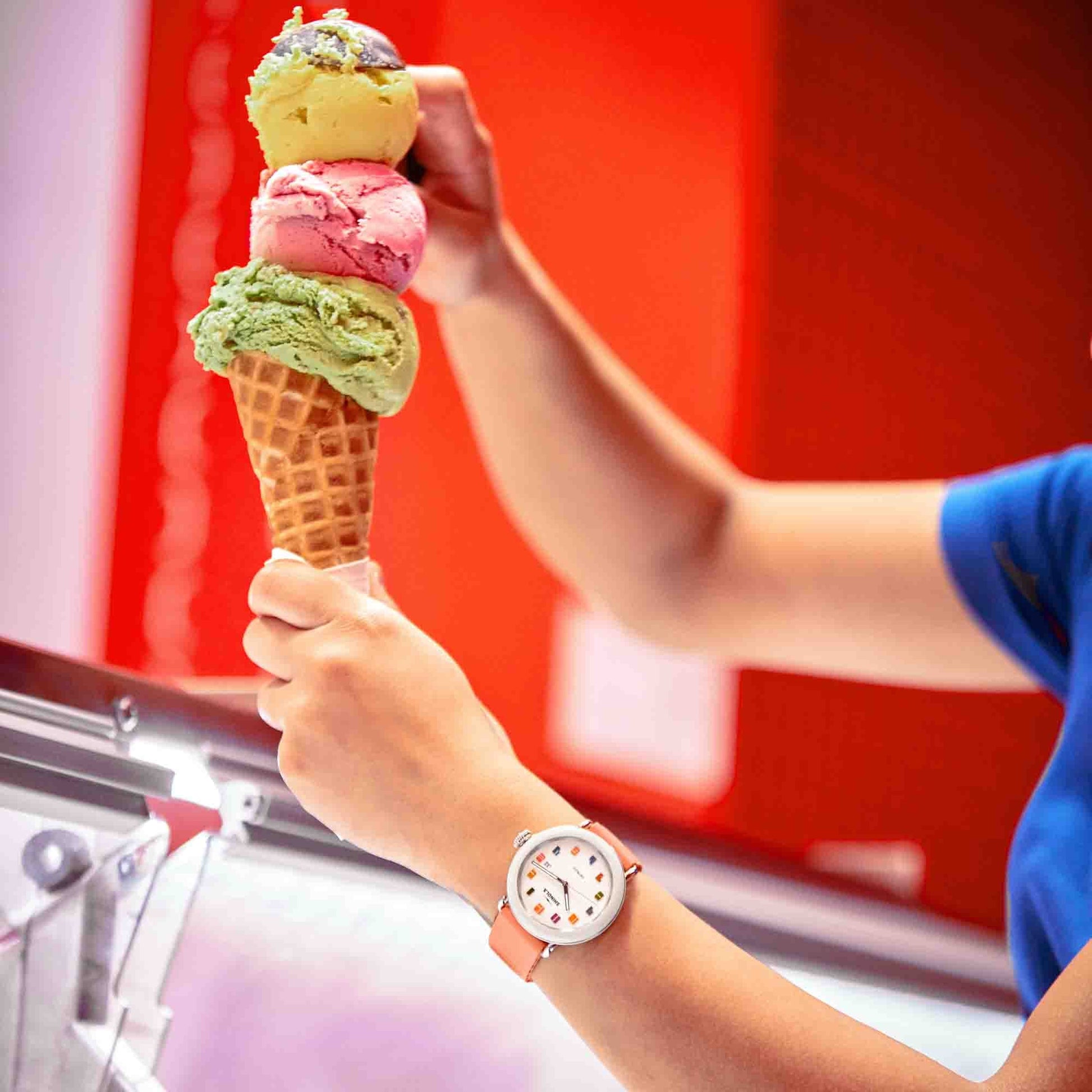 A tribute to American art that’s a work of art in itself. This rarified Runwell Detrola takes inspiration from the color and geometry of legendary Midcentury and Cranbrook artists. A sandblasted and stripe-textured warm gray dial is the canvas for 12 custom-made graphic numerals. Each is a playful, thoughtful exploration of form and color that represents the numbers we all know in a completely new way. It's brought together by the trademark craft and design of the Runwell Detrola: A stainless steel core co-molded with cream TR90 resin, wire lugs, a pumpkin crown, and an ultra-comfortable cream FKM rubber strap.