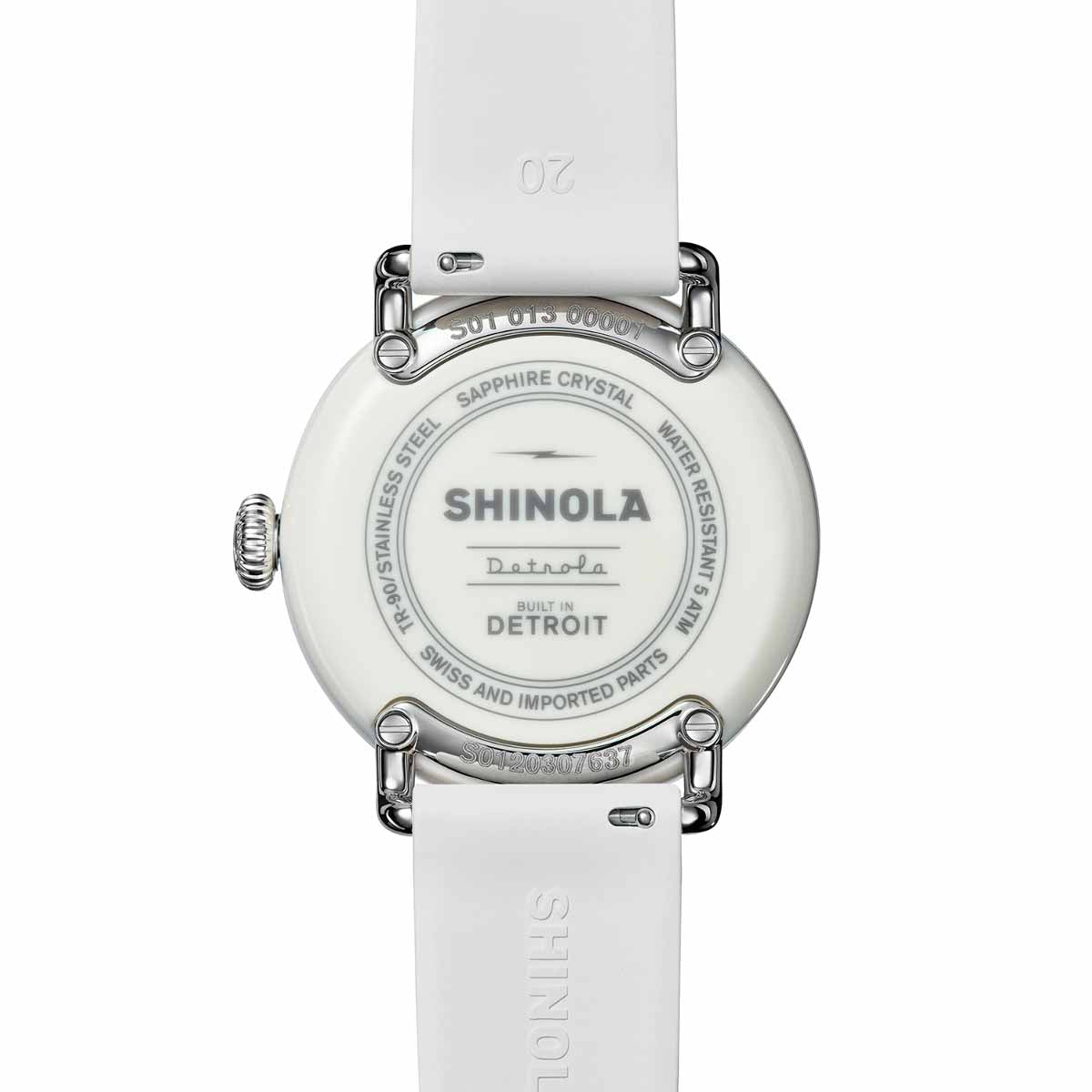 With the Runwell Detrola, every tick is an artful statement. Shinola reimagined this collection to live at the intersection of playful and thoughtful design—bringing together the contemporary with the timeless. The result is an intricate, colorful and carefully crafted timepiece that redefines the boundaries of classic American design. At 41mm, this piece pops on any and every wrist. Gold hands and numbers stand out against the sunray nude dial. A stainless steel core gives the watch its strength, and it’s co-molded with polished cream TR90 resin for durability and moisture-resistance. The piece is brought together with an ultra-comfortable FKM rubber strap in cream, with a classic pop of Shinola orange along the edges. Wear anywhere and everywhere—and every way but out.