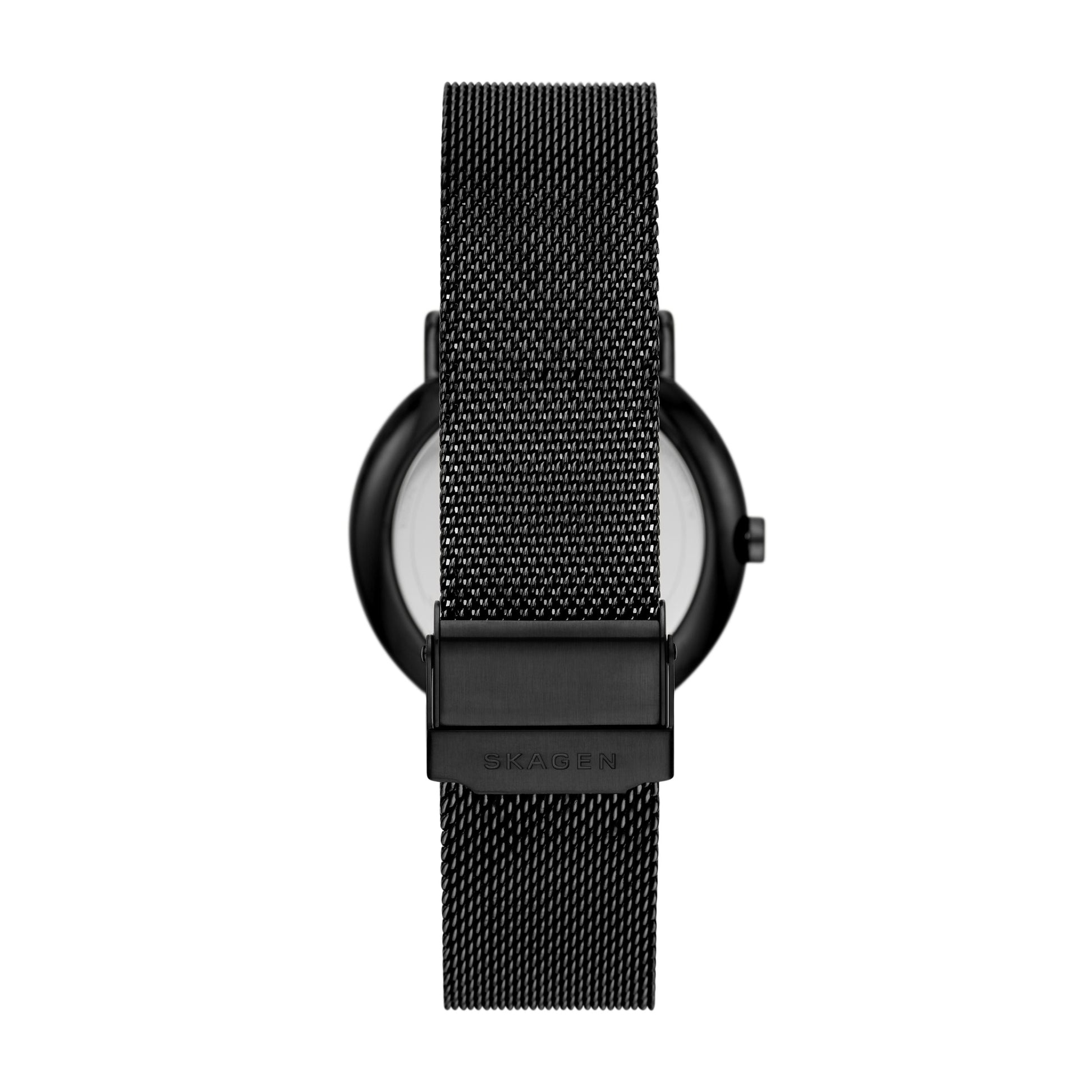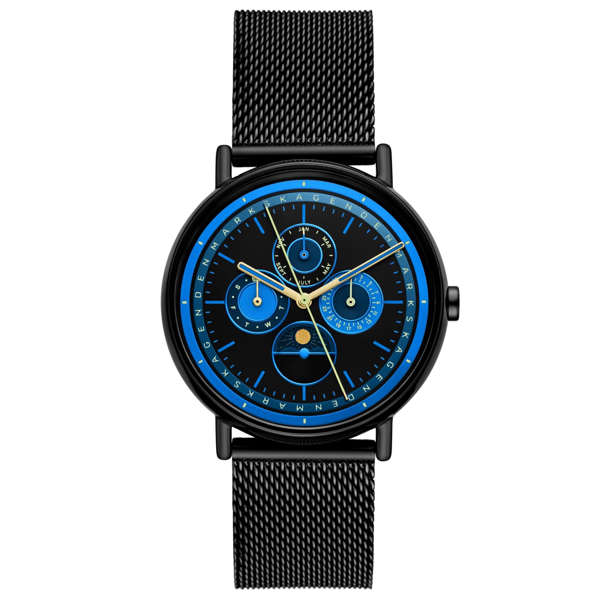 A sleek black-tone stainless steel bracelet and matching sunray-finished dial create a streamlined, monochromatic look, enhanced by multifunction subdials for added precision.