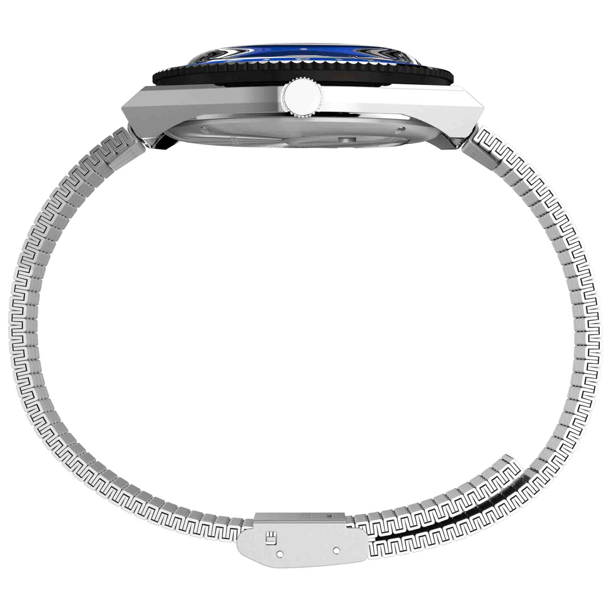 As a play on the nickname given to the color combo on the dial and bezel of our ‘70s Q Timex, seconde/seconde/ has injected a dose of fun into one of our most iconic watches. At first glance, it’s your typical Q—complete with stainless-steel case and bracelet, rotating bezel, functional battery hatch, luminous dial markings, and domed acrylic crystal— but take a closer look, and you’ll notice a customized second hand that playfully nods to the cartoon blue dial and bezel. We could spell it all out for you, but we’ll let you connect the dots. Flip the watch over, and you'll find that the case back is engraved with a unique edition number.